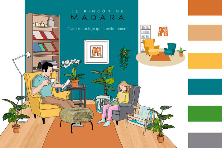 Logotipo y sistema gráfico para Madara Editoras, concebido para transmitir cercanía, cuidado y vocación de calidad. El nombre surge de la unión de los nombres de tres mujeres (Manoli, María y Mada), vinculadas a José Madero, propietario de Gráficas La Paz. El símbolo, una “M” con elementos gráficos y caligráficos, evoca tanto lo artesanal como lo editorial. Cada colección de la editorial (Poesía, Memoria histórica, Infantil...) se distingue por un color y un patrón de guardas propio, aportando coherencia y diferenciación visual.